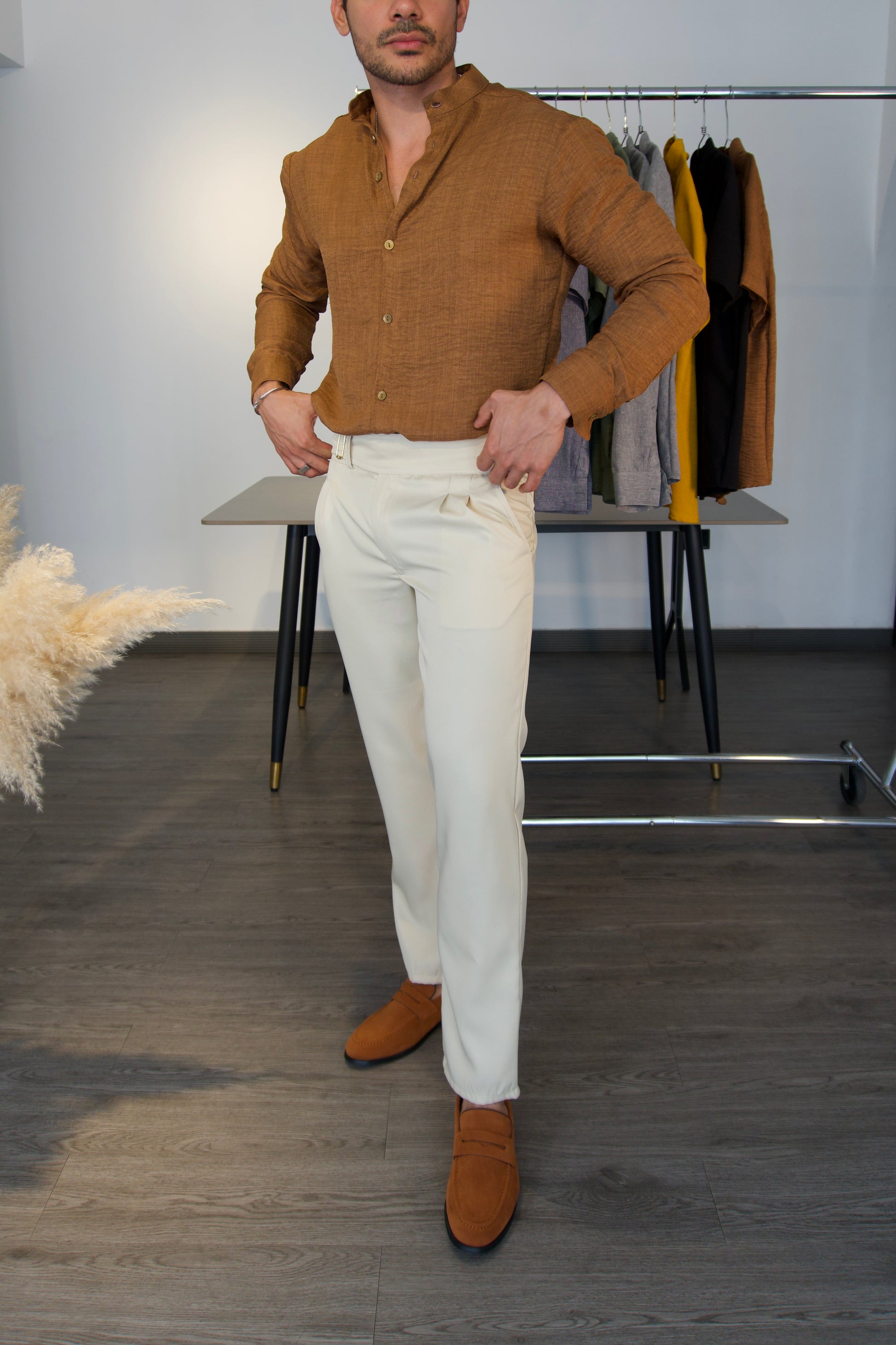 Calidez mediterránea con elegancia silenciosa. Confeccionada en tela Mantra —fresca, respirable y con esa textura ligeramente arrugadita que se ve auténtica— esta camisa cae con naturalidad y se siente premium desde el primer uso. El cuello mao mantiene una línea limpia y moderna, perfecta para un look old money relajado pero impecable, con vibra europea tipo Pitti Uomo.