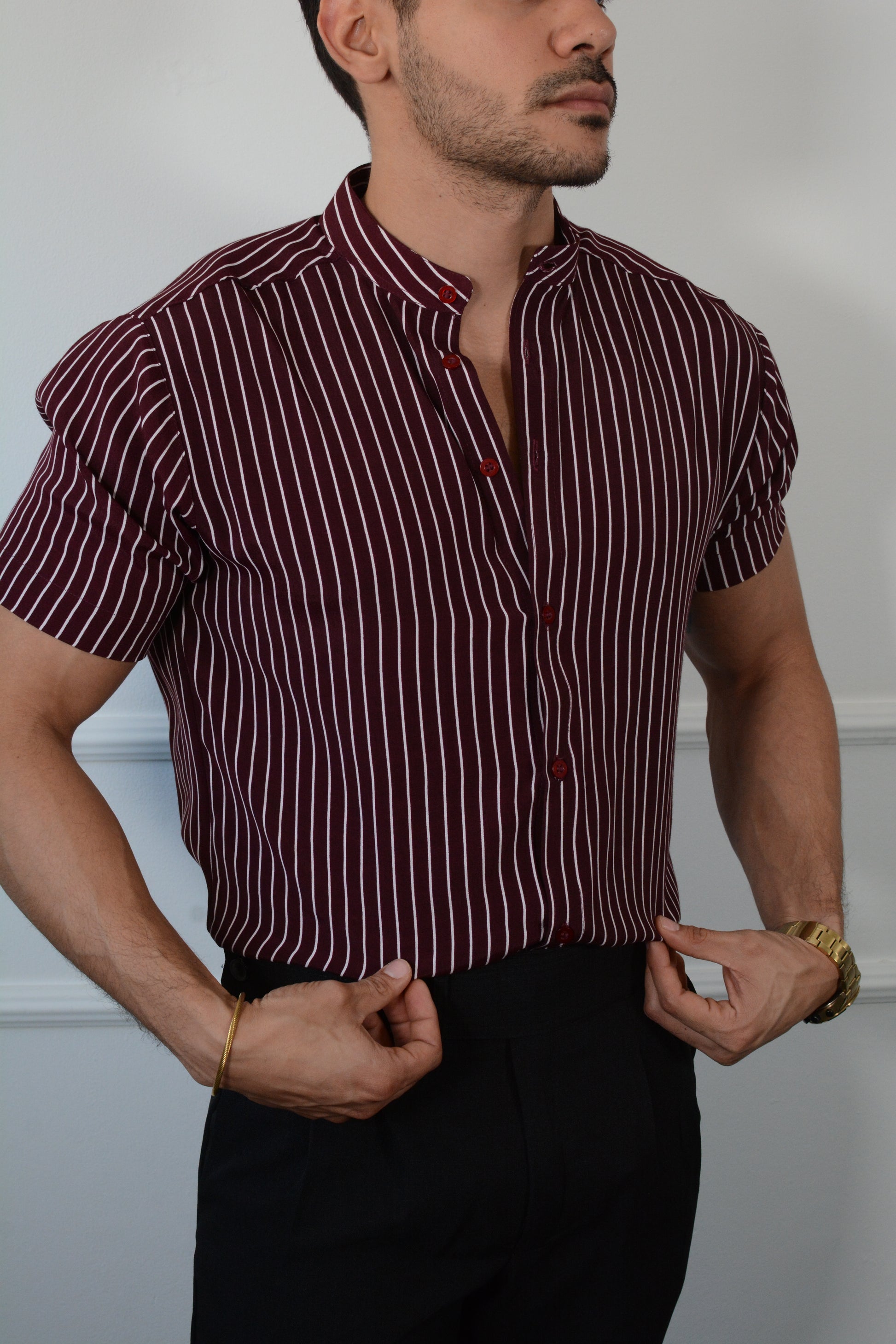Camisa Wine Stripes Mao Version