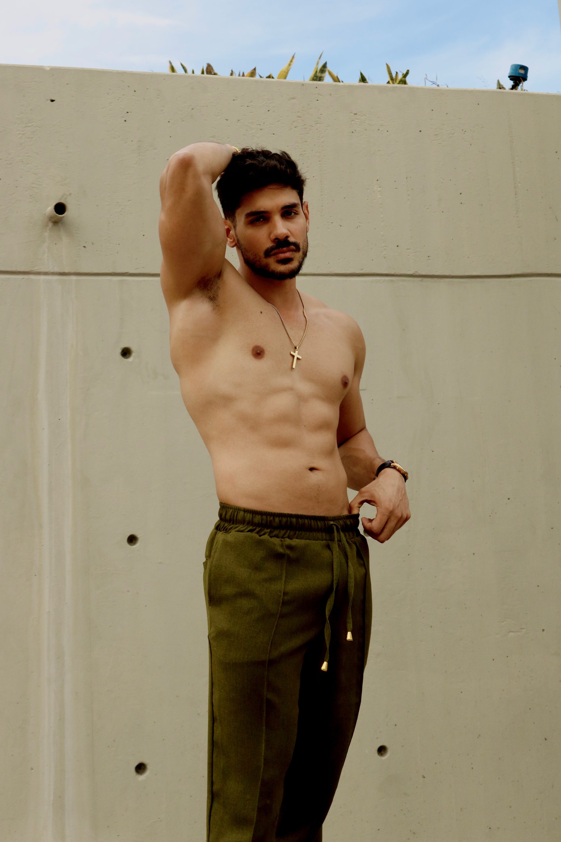 Confeccionado en lino italiano premium, su textura suave y respirable se funde con una pretina elástica que ofrece libertad de movimiento sin perder la forma.